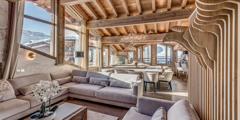 Head back to the chalet and relax in the wellness area where there is a sauna, steam room, hot tub and a relaxation area. There are 8 bedrooms, a living area, dining area and balconies off each of the rooms with stunning mountain views and en-suite facilities.