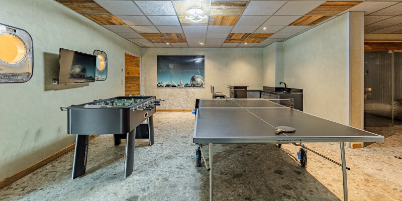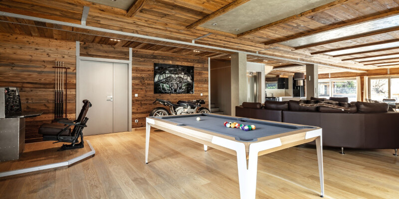 The chalet is spread over 2 floors and has a private wellness area with a sauna, hammam and an outdoor whirlpool, perfect for relaxing in after a fun filled day on the slopes. Entertain the family with the table tennis, pool and football tables, gather round the dining table for dinner or relax on the sofas in front of the flat-screen TV.